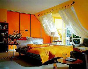 顏色除了能簡單的美化家居環(huán)境,還有調(diào)節(jié)人們心情的功能。橙色給人清新快樂的感覺,想讓單調(diào)乏味的生活增添活力,讓郁悶的心情開朗明亮起來,你可以在床上放一只色彩溫暖橙色的抱抱熊,在床頭點(diǎn)綴一些可愛的裝飾品。除此之外,橙色還有性感撩人的視覺感受。整面夢幻般的橙紅色的裝飾墻,陪襯樸素的本白色窗簾,都是不錯(cuò)的搭配選擇。
