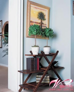 玄關的空間很小,一個小巧且多功能的架子是精明選擇,最好這個架子的擱板有三層或者三層以上,這樣就可以根據(jù)情況放置不同的物品,將美觀和實用集于一身。