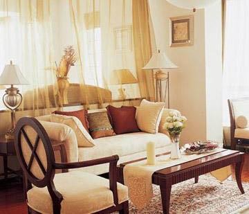 在幾十平米的空間里,人們最不敢嘗試的恐怕就要屬歐式的家居風(fēng)格了。因?yàn)樘岬綒W式,大家立刻都會想到挑高7-8米的天花上垂下的巨型水晶燈,寬大厚重的沙發(fā)、躺椅,金碧輝煌的墻壁。隨著新浪漫主義的回歸,一些30歲左右的人們又重新開始迷戀歐式風(fēng)情。可是,面積較小的房子里如何容納這么多的裝飾元素,怎樣在窄小空間里營造歐式氣氛?