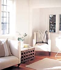 另外一個(gè)功不可沒的物件是鏡子,它在臥室的設(shè)計(jì)中真的是一個(gè)很神秘的角色。鏡子不但可以增強(qiáng)臥室燈光亮度,而且還有增大房屋空間的作用。當(dāng)然,千萬不要忘記鏡子本身的作用,它可要為你每天出門前的形象嚴(yán)格把關(guān)??梢钥紤]做一個(gè)推拉門,把鏡子鑲嵌在門上,房屋的面積會因此變?yōu)樵瓉淼膬杀?。如果戶型的設(shè)計(jì)中有一個(gè)令你不滿意的狹窄走道,那么鏡子就可以鑲嵌在這里,這樣可以在視覺上增加亮度、擴(kuò)大空間。