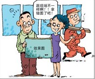 施工接近尾聲的話,要查看是否與設(shè)計(jì)圖紙相符合。對于木工活,看陰陽角做工是否平整接縫齊整,同一柜體面的選料、花紋是否一致。對于油工活,看油漆噴涂是否均勻,基層膩?zhàn)?穴油性、水性?雪涂抹是否均勻,打磨是否有漏打的地方。對于瓦工活,先感觀縫隙是否整齊,再用靠尺查看磚的垂直度與平整度,誤差率越小越好。查看陰陽角的貼磚是否方正,碰角的地方,墻磚的磨砌角是否整齊,再看勾縫的膩?zhàn)樱欠褚酌撀??!澡保?nbsp;龐麗/漫畫
