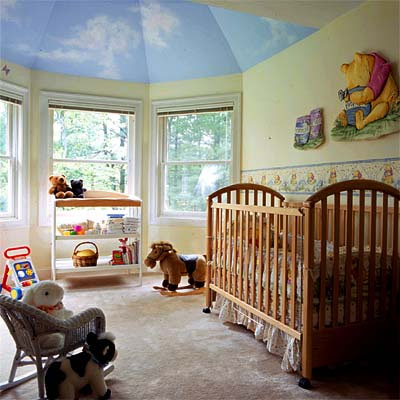 嬰兒的房間顏色以淺淡、柔和為宜。特別是淡藍色,對嬰兒的中樞神經(jīng)系統(tǒng)有良好的鎮(zhèn)定作用。