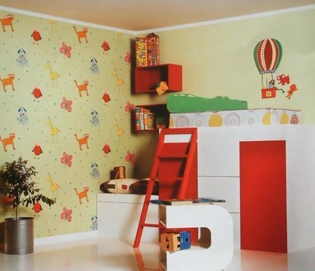 兒童房是最適合壁紙的地方,而它的壁紙也是最漂亮的。兒童房壁紙的首要要求就是環(huán)保,其次才是風(fēng)格。同時(shí)兒童房,因仆人的年齡差異是完全不同的。10歲以下的孩子的很多知識(shí)都是從直觀熟悉得來的,所以這部分孩子的房間可以貼一些卡通圖案的壁紙,這有助于刺激孩子的感知。孩子越小作用越大。而10歲到18歲的孩子,最討厭的就是被當(dāng)作小孩子,所以裝飾不能太幼稚?;泻⒆佑美渖{(diào),女孩子用暖色調(diào),而在腰線裝飾一些時(shí)髦的圖案。女孩子可以放一些Q版的時(shí)髦女孩圖案,男孩子則適合運(yùn)動(dòng)元素。