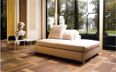 Fetim方格運用新古典拼花的表現(xiàn)形式,散發(fā)古老的歐式味道,將歐洲文化緊密融入生活。加寬處理的板面,是大地板在寬度上的又一突破和升級。而手工鑲嵌工藝的敲面處理,使整塊地板呈幾何形狀整齊分布,帶有凹凸質感更古樸耐看,裝飾效果也更強。當初選擇這款地板入封面的雜志工作人員表示,這款地板能讓都市的喧囂、浮躁立即消失在腳下,好似通過地板把家搬到郊外,使靈魂安靜下來。
