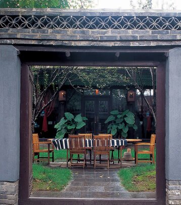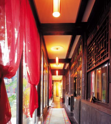 院子的面積很大,事實(shí)上有500平方米,這樣大的院子在寸土寸金的北京是可以想見的珍貴。站在院子里,頭上是碧藍(lán)的天;地上是萋萋的草,一副木質(zhì)的桌椅閑散地放置在天井中央,旁邊是茂密的西府海棠。后面的穿廊里是一幅一幅低垂的紅幔,陽光下大棵的滴水觀音茂密豐盛,整個(gè)房子氣象絢美,讓人很難想象它也曾列在拆遷名單上,差點(diǎn)變成廢墟。