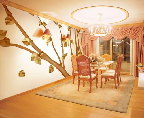 壁紙適合使用在臥室或客廳的四面墻壁,但不宜選用在房頂,因?yàn)榉宽敳灰卒佈b,同時(shí)花紋和色彩都可能造成壓抑的情緒。房頂選擇白色的啞光乳膠漆,涂刷效果更為理想,而且省事也簡(jiǎn)便。
