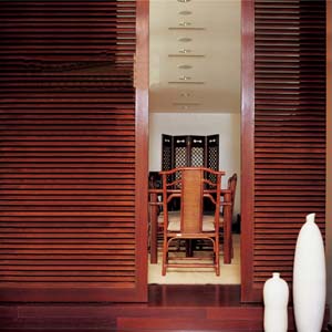 同樣,窗也作為一種連通室內(nèi)室外空間的介質(zhì),有著其特殊的精神內(nèi)涵。窗可以將室外的景致引入到室內(nèi)空間中,也可以通過(guò)窗框,將室內(nèi)的環(huán)境象征成一幅幅裝飾畫(huà)而豐富建筑的立面。同時(shí),室內(nèi)每個(gè)房間也可以通過(guò)窗,通過(guò)裝飾窗框連通室內(nèi)室外為一個(gè)整體。這種傳統(tǒng)的修飾手法將室外的景色和植物通過(guò)窗引入室內(nèi),來(lái)豐富室內(nèi)環(huán)境,意在“一卷代山,一勺代水”,以小見(jiàn)大,寓無(wú)限意境于有限的景物之中。所以,門(mén)和窗的起始正猶如創(chuàng)作一幅山水或是一幅書(shū)法中的起筆,所有的神韻和氣勢(shì)均在這動(dòng)人的一“起”之中。注重細(xì)節(jié)才能突出效果。尤其是在現(xiàn)代結(jié)構(gòu)的住宅中,“中國(guó)元素”的置景特點(diǎn),往往可以達(dá)到移步換景的裝飾效果。這種裝飾手法,給空間帶來(lái)了豐富的視覺(jué)效果。像屏風(fēng),帷幔,翹頭案等這些家具,展現(xiàn)出了中國(guó)傳統(tǒng)藝術(shù)的永恒美感。