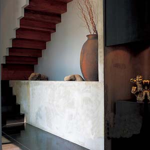富于現(xiàn)代簡(jiǎn)潔線條的樓梯給中式空間注入了時(shí)尚的節(jié)奏感,而留白手法的運(yùn)用在新舊材質(zhì)的對(duì)比中體現(xiàn)了一種婉約的美感。