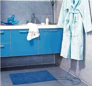 勿忘的點(diǎn)睛之筆——方便實(shí)用的裝飾品:衛(wèi)浴間的裝飾材料以藍(lán)色為主,色調(diào)整體偏冷。在這樣一個(gè)冰冷季節(jié),柔軟的棉制面料會(huì)提供溫軟舒適的感覺(jué)。在冷色基調(diào)中營(yíng)造出暖意融融的洗浴環(huán)境。