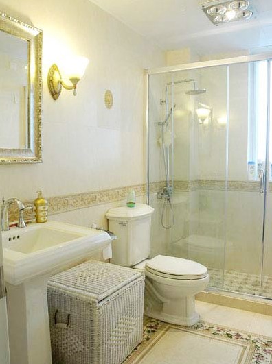 在小浴室選擇潔具、配件、裝飾品、以及其它材料的時(shí)候,必須要充分考慮尺寸大小、顏色、圖案或質(zhì)地的統(tǒng)一性。這樣的話,不管浴室風(fēng)格是怎樣的特定,抑或是怎樣的組合,都能保持一種強(qiáng)有力的風(fēng)格連貫性。還必須從實(shí)用的角度出,小地毯、舒適考究的椅子、精致的墻面以及垂簾固然可以創(chuàng)造傳統(tǒng)的浪漫情調(diào)。