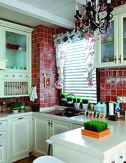 而在櫥柜上則更多選擇實木。水洗綠、檸檬黃,是多年以來都流行的色彩,木條的面板紋飾強化了自然味道。如果你是喜歡鄉(xiāng)居的人,鄉(xiāng)村風(fēng)格的廚房會讓你的生活更加充滿閑適自然的味道。