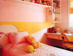 由于每個(gè)小孩的個(gè)性、喜好有所不同,不妨把兒童居室的墻面裝飾成藍(lán)天白云、綠樹(shù)花草等自然景觀,讓兒童在大自然(企業(yè)博客|專題)的懷抱里歡笑;各種色彩亮麗、趣味十足的卡通化了的家具、燈飾,對(duì)誘發(fā)兒童的想像力和創(chuàng)造力會(huì)大有好處。