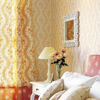 配合白色鄉(xiāng)村格調(diào)的家具,選擇鮮花作為室內(nèi)的調(diào)色良方,在富有肌理凹凸效果的布藝壁紙襯托下,格紋、波浪紋的搭配使大幅的花朵圖案更有溫馨層次感。