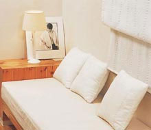 這是在獨(dú)身居所的房間里可以嘗試的創(chuàng)意。將地面增高至屋頂高度的一半左右,形成獨(dú)特的結(jié)構(gòu)。高出的地面和原來(lái)的地面之間,可以用階梯相連。這樣將空間分割成兩部分,底部用于收納,上部可以將其裝飾成臥室,還能享受到閣樓般的溫馨氣氛,可謂一舉兩得。在階梯的中間部位,放上一個(gè)大坐墊,就有了一個(gè)看似平平,卻很柔軟的休息空間了。