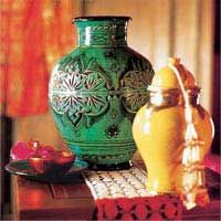 色感華麗的摩洛哥瓷瓶 因?yàn)槲锲繁旧韺⒛β甯顼L(fēng)格特有的色彩感很好地展示了出來(lái),所以即使只有這樣幾件傳統(tǒng)陶瓷制品放在餐桌上,濃郁的摩洛哥風(fēng)情也會(huì)呼之欲出。這樣的瓷瓶,既可以在里面放置物品,也可以單純作為裝飾品。