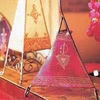 休閑角落 洋鐵臺(tái)燈 洋鐵臺(tái)燈,是代表摩洛哥風(fēng)格的又一種臺(tái)燈。鏤空、雕花,種種復(fù)雜的工藝用于洋鐵材料上,制作出來(lái)的是極具裝飾效果的別致臺(tái)燈,很有神秘感,可以放在陽(yáng)臺(tái)或其他休閑角落。