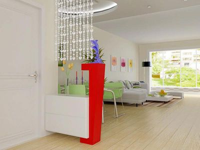 5、梁柱廳內(nèi)應(yīng)避免梁的阻障,可在其上改其結(jié)構(gòu)裝飾成各類美麗的造型。如傳統(tǒng)式拱門,天花板的延伸、繪花等,也可干脆分成兩個區(qū)域?;蚴窃趬Ρ趻煲幻骁R子,象徵性的補足缺角,然后,當成完整的房間來決定中心點。