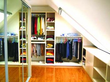 ·“空中衣帽間” 有沒有想過把你的閣樓改造成自己的衣帽間?把自己心愛的衣物寶貝似地“收藏”在樓頂。在天氣陰冷,或是心情低落的下午,你可以一個人躲在你的“空中衣帽間”里,一件件地試穿各個季節(jié)的漂亮衣服,直到心情放晴。你也可以在朋友聚餐之前、在閣樓上精心地妝扮自己。當(dāng)你如公主、王子般款款地從樓梯上走下,心情是否也會高貴起來?