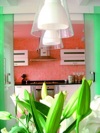 雖然有大面積的白,但是整個(gè)空間并不顯得死板,因?yàn)樵O(shè)計(jì)師在小面積客廳點(diǎn)綴了亮麗的橘紅,在衛(wèi)生間使用了白和玫瑰紅的對(duì)比,使整個(gè)空間靈動(dòng)起來。