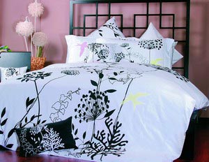 布莉絲是美國(guó)聞名的時(shí)尚家居品牌,主打產(chǎn)品為床上用品、香熏蠟燭和飾品,本季的設(shè)計(jì)風(fēng)格將優(yōu)雅的生活品位極致展現(xiàn),引領(lǐng)出新一季的家居裝飾流行風(fēng)向。運(yùn)用花鳥、枝條等設(shè)計(jì)元素,流露簡(jiǎn)約、自然、優(yōu)雅、閑適的生活情趣;透過大膽、鮮明的配色理念,彰顯出自由、飛揚(yáng)、成熟、現(xiàn)代的個(gè)性感受。代表產(chǎn)品安妮絲雖然色彩很酷——運(yùn)用了黑白對(duì)比,但是花草的圖案很曼妙,非凡是刺繡上的飛鳥很別致。