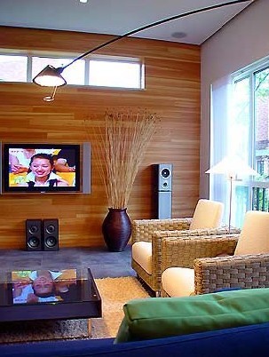 透明玻璃、磨砂玻璃和鏡面的配合與運(yùn)用,因其具有擴(kuò)展空間的裝飾效果而備受現(xiàn)代家庭裝修的青睞。但是,如果這些材料處理不當(dāng)?shù)脑?,也會造成空間層次過于復(fù)雜,從而給居住者帶來混亂和反差的視覺效果。