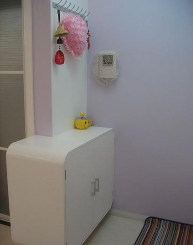 鞋柜為了迎合我們提前看好的OOD的電視柜,是仿照OOD做的圓角,門(mén)上的凹槽自己想的,效果不錯(cuò)!木工小何把鞋柜懸空了,說(shuō)是這樣好打掃衛(wèi)生,看起來(lái)也洋氣吊頂是仿照照片做的,玄關(guān)還差串珠簾