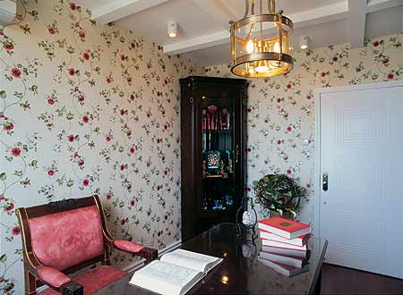 與一般所不同的是,這里所說的布藝色彩相配有兩層意思,一是布藝制品與整體環(huán)境色,以及壁紙的色調(diào)要保持和諧一致,二是布藝制品之間色調(diào)也要一致,盡量不要出現(xiàn)與主色調(diào)大相徑庭的顏色。換言之,使用花朵圖案壁紙的空間里,要避免多而雜的色彩組合,因為花朵本身已經(jīng)很熱鬧了。