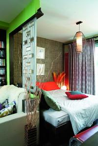 為了節(jié)省空間,阿峰家的床緊靠分隔休憩區(qū)和會客區(qū)的花窗。