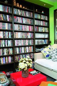 男主人阿峰在生活里是個不折不扣的享樂主義者,最最喜歡的事情就是打游戲、看電影、和朋友們一起happy,喝點兒紅酒放松一下自己。在屬于自己的空間里,這三樣享受當然不可或缺。為了安置幾年下來積攢的兩千多張電影和游戲碟片,阿峰不得不專門辟出一整面墻來擺放它們。幾千張的碟片放在一起很有氣勢,無聲地宣告了主人的愛好,成了阿峰會客區(qū)域最惹眼的景象。