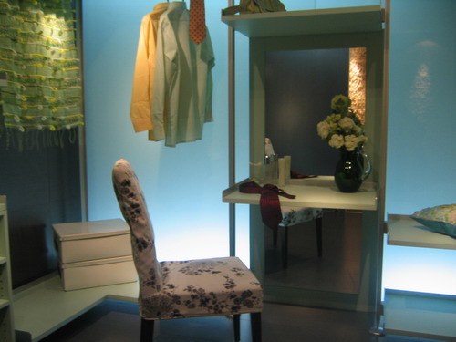 隨天氣轉(zhuǎn)暖,羽絨服也被時(shí)尚春裝取代,衣帽間自然也應(yīng)換一種表情,果綠和蛋清色成為私秘空間的色彩首選。本案中,博洛尼設(shè)計(jì)師將梳妝臺(tái)鑲嵌在特質(zhì)玻璃墻中,配以淺綠色的家居配飾,頗具田園般浪漫情調(diào),恬淡與知性氣質(zhì)悄然蔓延。