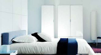 不知從什么時(shí)候開(kāi)始,人們?cè)诖采系纳钜呀?jīng)不限于睡眠的8小時(shí),那些滿足睡眠、娛樂(lè)甚至工作等功能的復(fù)合性床具增加了我們對(duì)臥室的依戀。所以臥室不在大,關(guān)鍵是以床為中心的舒適感和放松感。