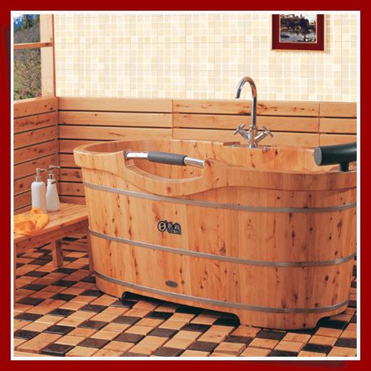 9、 木桶具有移動性:有些型號的木桶,下面有輪子,可以隨時來去移動,也就是你可以在衛(wèi)生間放好水,然后到陽臺、或者臥室去沐浴。