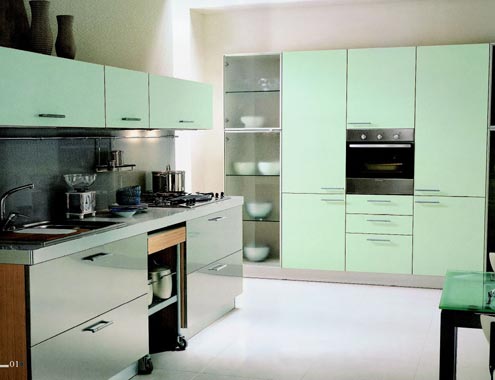 據(jù)資深櫥柜設計師介紹,功能強大的整體櫥柜在實際布置時常擺放成一字型、L型或U型。面積不大的廚房一字型較常采用,所有的工作區(qū)安排在一面墻上,節(jié)省空間。如果廚房比較寬敞,一字型的櫥柜最好拐個角變身L型,否則容易降低操作效率。U型的櫥柜有兩處轉(zhuǎn)角,空間要求最大,收藏也最豐富。