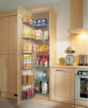 有的櫥柜因為內(nèi)部空間較大,就采用能抽拉的蝶形層架。通過巧妙的構造,拉開一點能拿到放置較近的物品,完全拉開就聯(lián)動帶出放置較深的東西,省去了探進櫥柜翻找東西的苦惱。柜門阻尼器的使用也是一個很人性化的舉措。由于柜門鉸鏈的拉力,通常在關閉柜門后都有討厭的嘭嘭聲,但采用阻尼器后,櫥柜門合上時,能被阻尼器先緩沖一部分力道,然后緩慢地閉合。