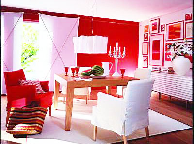 臺(tái)布、床罩、枕套、窗簾、燈具等在圖案風(fēng)格、色彩上都要協(xié)調(diào)。墻面、地面是室內(nèi)最大的面積,它們的色彩應(yīng)同家具的色調(diào)相鄰近,地面色彩應(yīng)稍深于墻面。室內(nèi)色彩是由房間六大面、家具、紡織品、家電、裝飾物品、植物的顏色構(gòu)成。新房中除了選擇一種顏色作為房間的主色調(diào)外,還需要有一種小的變化。感情熱烈的,以暖色系中的紅、黃、赭、褐為主體;喜田園詩(shī)趣的,以冷色系中的綠、藍(lán)等色為主體;喜素雅風(fēng)格的,以中性系中的白、灰為主體色,采用面積、明暗、純度上的對(duì)比來活躍色彩氣氛,更是恰到好處,對(duì)于不大的新房,不適合濃重的顏色。若“六大面”選擇了淺一點(diǎn)的顏色,如牛奶色、淡藍(lán)色、淺綠色、粉紅色等單純色,那么,帷幔、窗簾就應(yīng)該選有花色的面料。