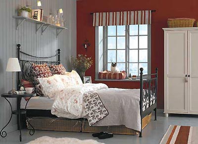 雖然看起來(lái)是張?jiān)俸?jiǎn)單不過(guò)的單人床,但是顏色的搭配和那么許多靠墊,都是女孩子愛(ài)它的原因??雌饋?lái)是不是很溫馨?。?