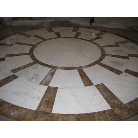 顏色:整個拼花同種材料顏色必須一致,但對某些材料(西班牙米黃,舊米黃,珊湖紅等大理石)本身在同一張板上都存在著色差的,則采取顏色逐漸過渡的原則選料,以不影響拼花的美學(xué)裝飾效果為原則。當(dāng)實(shí)在無法達(dá)到好的裝飾效果和符合客戶的加工要求時,在征得客戶的同意后方可選料加工。