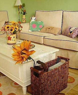 如果實在忙得無暇打理花草也沒事,去布藝店為沙發(fā)量身定做一身花朵盛開的“新衣”,或者索性扯幾米淺色調(diào)耐磨的布,直接鋪在布藝沙發(fā)上,更顯灑脫隨意的心情。