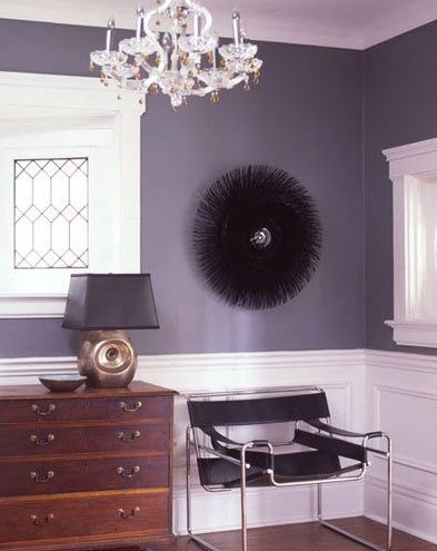 煙灰色的墻壁,雪白的護(hù)墻板和窗框,強(qiáng)烈的對比讓這個門廳看上去很是時尚。