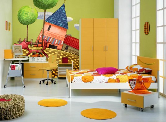 家長(zhǎng)可根據(jù)小主人的性格特點(diǎn)和生活習(xí)慣,采用鮮活的暖色調(diào)和多元的幾何