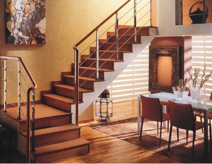 木質(zhì)樓梯給人以溫暖踏實(shí)的感覺(jué),是樓梯材質(zhì)的首選,但它對(duì)環(huán)境要求很高,特別潮濕或干燥的地方都不適合,在這種條件下樓梯會(huì)變形、開裂,影響安全性。因此,在安裝的時(shí)候應(yīng)注意預(yù)留一定的膨脹空間。