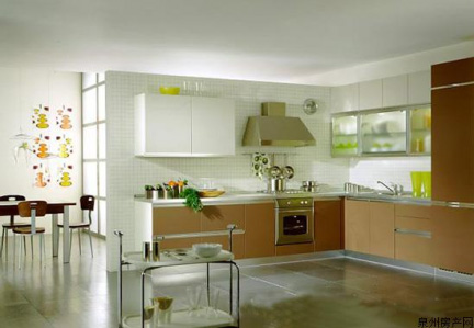 利用吊柜讓廚房的上層空間完全得到了利用??梢詫⑼氲?,重量相對較輕的烹飪用的鍋放在吊柜上,易碎的物品放在高處也不用怕傷到孩子。一般來講,為了保證存取物品方便,又不易碰到頭,吊柜和工作臺面距離以50厘米為宜,寬度以30厘米為宜。