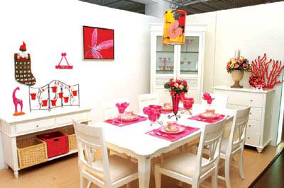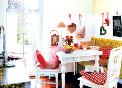 方案三:色澤鮮艷的布藝飾品也會提升餐廳的圣誕指數(shù),粉紅色的餐布、格子餐墊、餐巾、溫暖的靠墊或墻上的布藝掛飾等都會烘托出考究浪漫的品位。