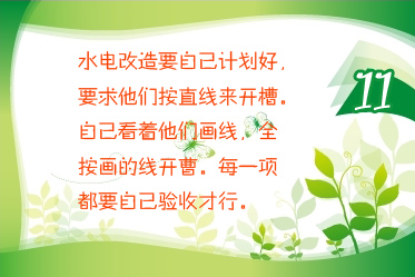 裝修工程完畢后,業(yè)主入住就接觸裝修的設(shè)施和物品,這時就進(jìn)入一個試用、使用階段,期間,可能產(chǎn)生一系列的問題。業(yè)主還要在以后的長期使用中對裝修進(jìn)行必要的養(yǎng)護(hù),這就要求業(yè)主了解裝修后的使用、養(yǎng)護(hù)方面的知識。