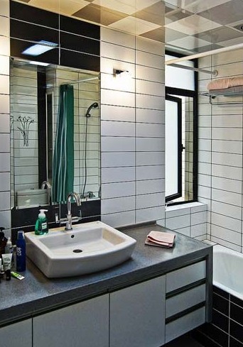 與淋浴間相對(duì)的墻面完全使用了鏡子,擴(kuò)大了小浴室的空間視覺感,鏡子前面做成了浴室架,上面安裝了臺(tái)式盆,這里可以梳洗打扮,邊上的綠色植物,成了整體設(shè)計(jì)中引人注目的亮點(diǎn),也為環(huán)境帶來(lái)了生氣。