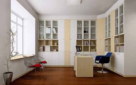 面積不是很大的書房,沿墻以整組書柜為背景,前面配上別致的寫字臺,全部的家具以淺色調(diào)為主,體現(xiàn)書房的靈敏感和進取感。面積稍大的書房,則可以用高低變化的書柜作為書房的主調(diào)。