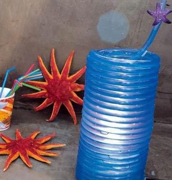 材料:塑料水管、顏料、水、膠槍再普通不過的一段水管,一圈圈盤起來,注入預(yù)先調(diào)好的淡藍(lán)色液體,便成為一款略帶憂郁的小燈。光從半透明的材質(zhì)中透出來,月色般朦朧。