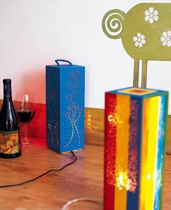我們童年都做過紙手工,現(xiàn)在我們舊夢(mèng)重溫。簡(jiǎn)單的材料——卡紙、羽毛;方便的工具——打孔機(jī)、裁紙刀,用做家具剩余的木條,或者任何可以做支架的東西,固定出一個(gè)三腳架,用鐵絲把燈泡固定在三腳架下(不要離木條和紙?zhí)?,有安全隱患),把卡紙打孔或裁出喜歡的圖案。