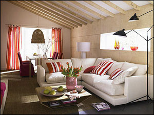 但經(jīng)過裝飾,我們發(fā)現(xiàn)其實這樣的房型也蠻可愛的。空間私密,很適合兩口之家。為了將尖頂臥室調(diào)亮光線,我們將墻壁刷成大面積的粉紅色,床單靠枕都換成大紅色,屋內(nèi)的氣氛頓時變得溫馨起來。由于天窗通風(fēng)效果好,我們利用這個優(yōu)點(diǎn),在衣柜上索性采取了無門設(shè)計,以布簾替代,拿取衣服方便,也讓臥室顯得輕巧許多。房頂中央吊上一盞梭形紙燈,柔和的光線很適合臥室的曖昧情調(diào)。至于尖角落,我們利用那丁點(diǎn)空間做出一排暖氣片,位置高度恰到好處。能直接烘曬我們的小衣服,美觀又實用。天窗雖小,但裝上百葉窗后,顯得精致了許多??傮w感覺,不規(guī)則的臥室,裝飾比規(guī)矩的臥室更簡單,而且容易展現(xiàn)小情調(diào)。