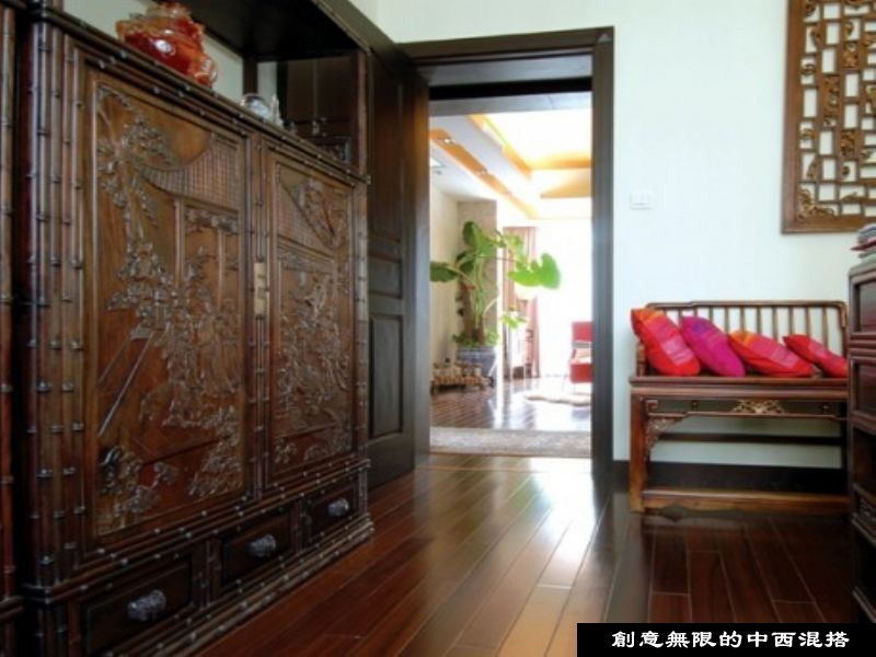 概要:   此套案例為中西混搭,脫去古板外衣的中式裝修,混入歐洲新古典的壁爐,餐桌椅,配以綠色植物,讓空間變得華麗而真實(shí)。  陽(yáng)臺(tái)打造成飄窗,桃紅的簾子,鐵藝的沙發(fā),可坐可躺,真真自由自在??蛷d皮質(zhì)的沙發(fā),歐式的布藝椅子,點(diǎn)睛之筆在于胡桃木的鋼琴。這類明清樣式的家具,價(jià)格不菲,更能彰顯主人的高雅品位。